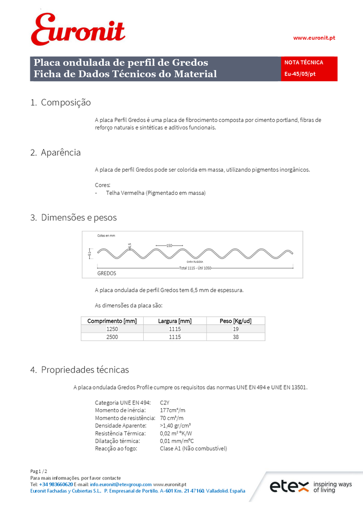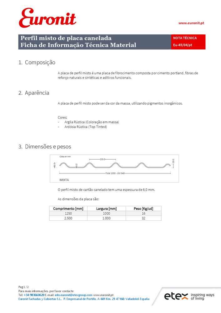 Dados técnicos da placa de fibrocimento subtelha 230 C2Y